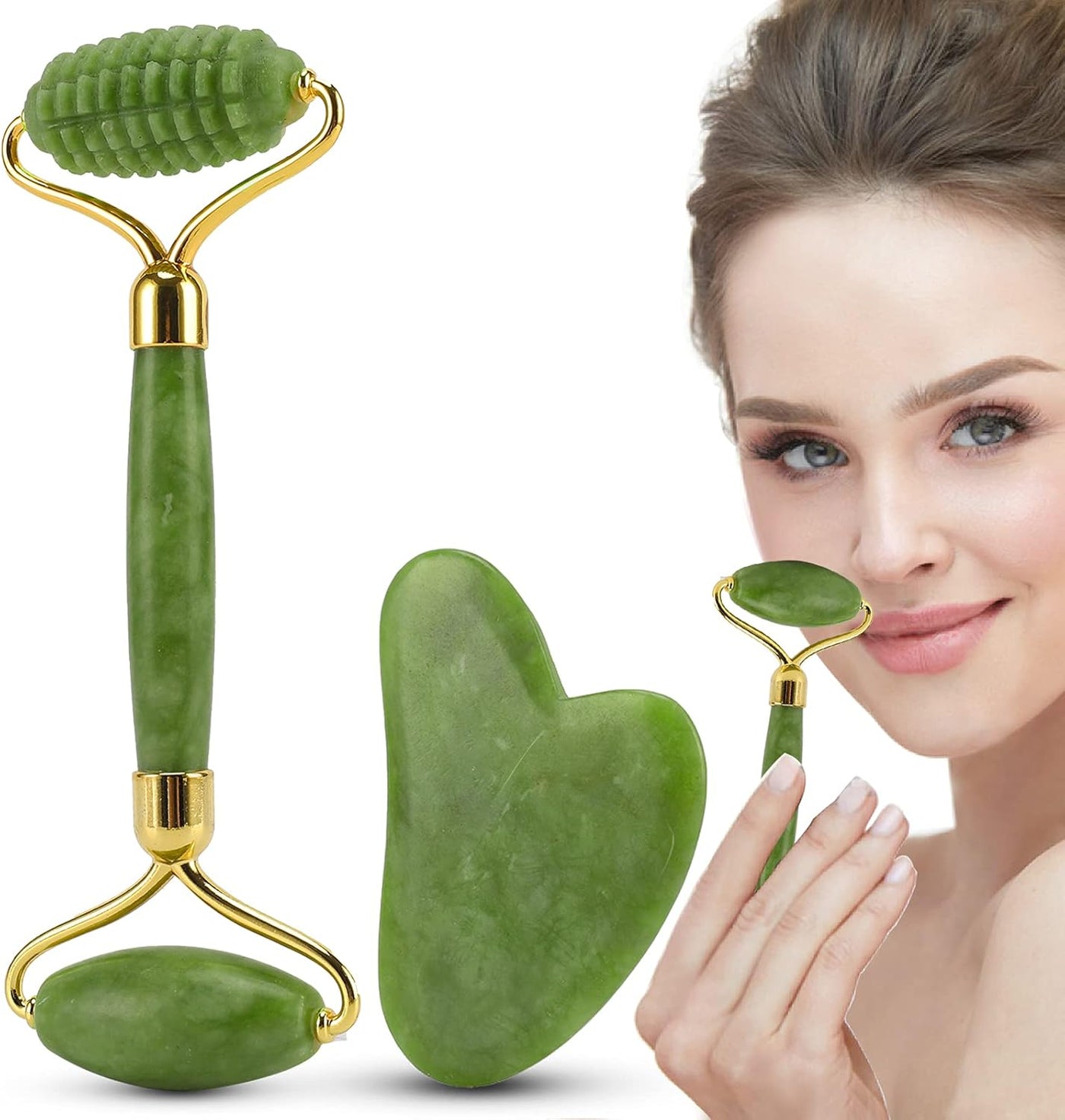 Durable & Ergonomic: Smooth, polished jade rollers are securely attached to a sturdy handle for a comfortable and seamless massage experience.